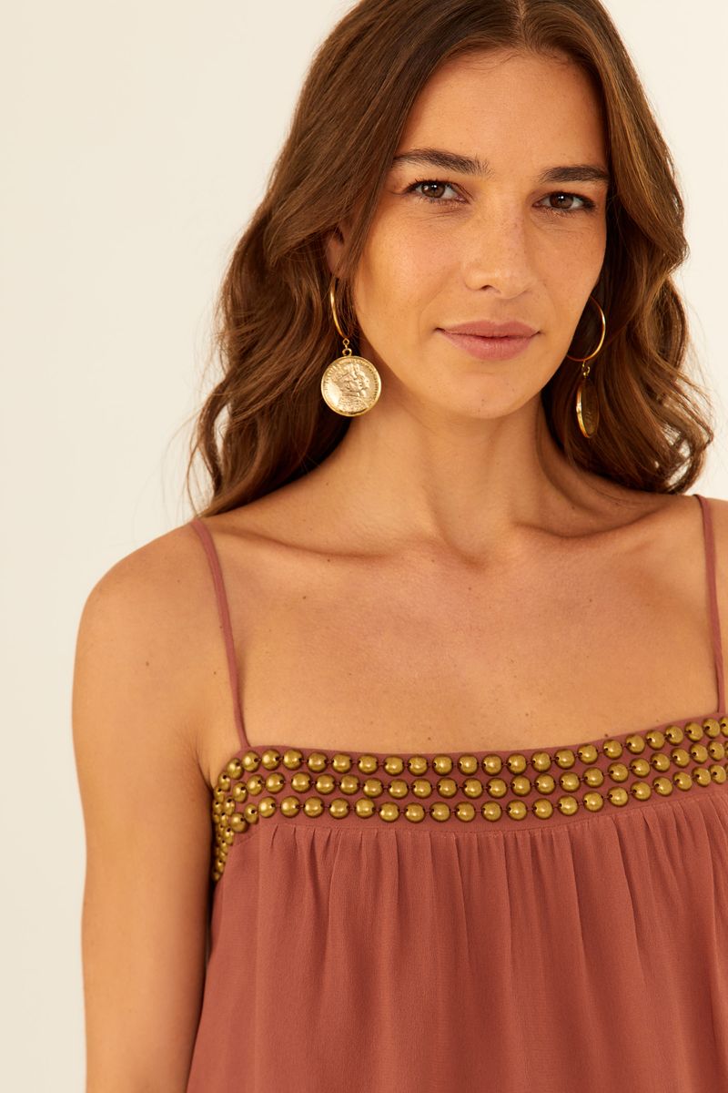 A Blusa de Alça GGT Metais traz sofisticação sutil com seu caimento leve e detalhes que enriquecem o visual. Feita em tecido fluido, valoriza os movimentos com frescor e conforto. O detalhe de metais na alça adiciona um toque refinado à peça, perfeita para composições femininas e atemporais.