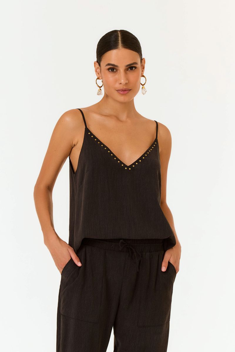 Regata com decote V frontal e profundo nas costas, que oferece frescor e movimento ao vestir. Confeccionada em tecido plano liso com composição de lyocel e viscose, proporciona conforto e caimento fluido. Versátil e atemporal, é perfeita para composições femininas que unem praticidade e sofisticação sem esforço.