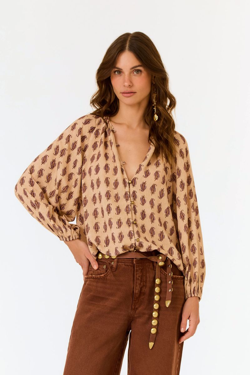 A Blusa Estampa Hippie Compose une o frescor do linho com a leveza da viscose, trazendo um caimento fluido e agradável ao vestir. A estampa exclusiva em compose valoriza o visual com personalidade e sofisticação, perfeita para composições que transitam com naturalidade entre o casual e o easy-chic.