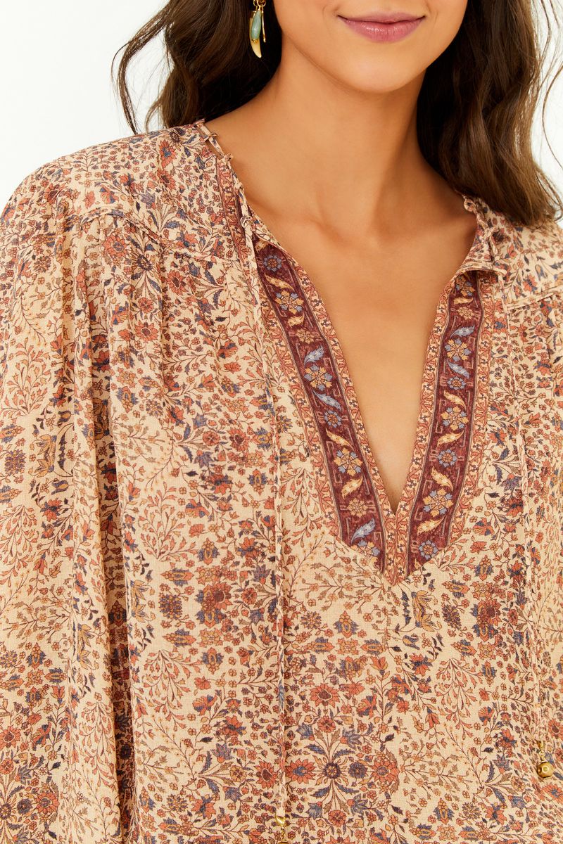 - Combine com saia mídi de linho cru para realçar a fluidez da estampa.