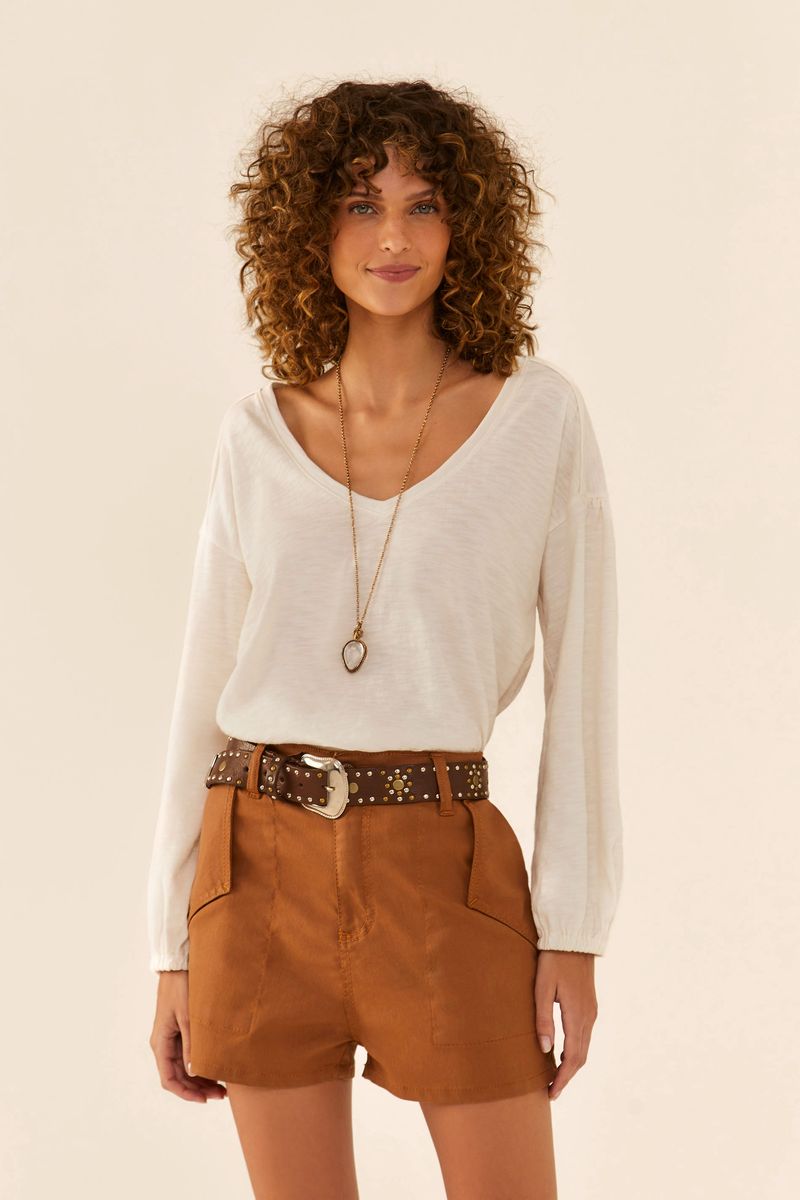 - Decote em V para um toque de elegância discreta.