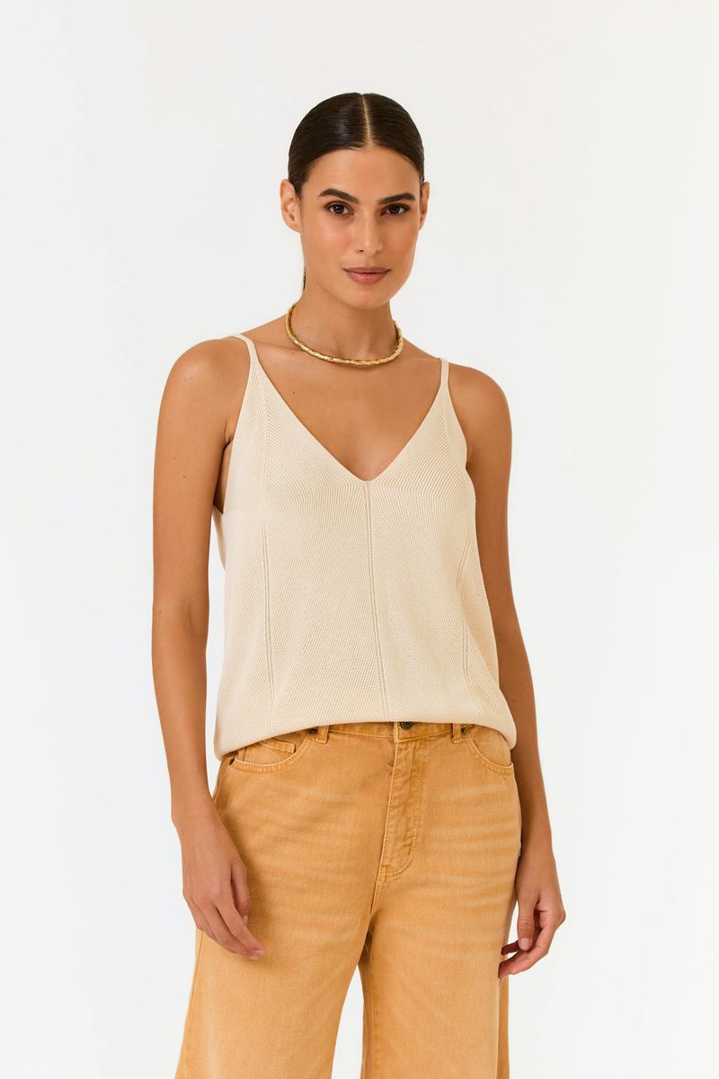 A Blusa Tricot Decote V Alcinha traduz frescor e leveza em um tricot de visual clean e atemporal. Com alças finas e decote em V, valoriza o colo com sutileza e traz conforto para dias mais quentes. Perfeita para compor sobreposições ou brilhar sozinha em produções sofisticadas com naturalidade.