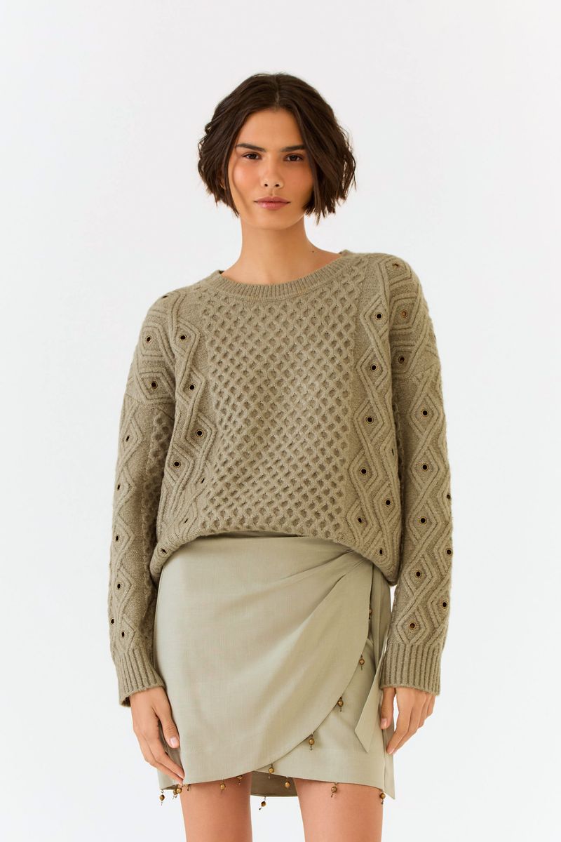A Blusa Tricot Jacquard com Ilhós traduz o equilíbrio entre design autorial e conforto em uma peça feita para acompanhar diferentes momentos. O toque macio do tricot, aliado à modelagem ampla, garante bem-estar ao vestir, enquanto os detalhes com ilhós adicionam personalidade com sofisticação sutil.