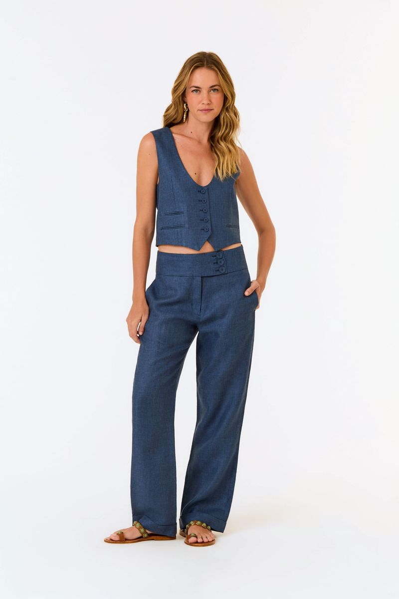 A Calça Botões une a sofisticação da alfaiataria com a casualidade do estilo denim, criando uma peça versátil para o verão. Com cintura alta, abotoamento lateral triplo e corte reto, valoriza a silhueta sem abrir mão do conforto. O linho em sua forma pura garante respirabilidade, frescor e um toque natural, perfeito para acompanhar a temporada com elegância leve e atemporal.