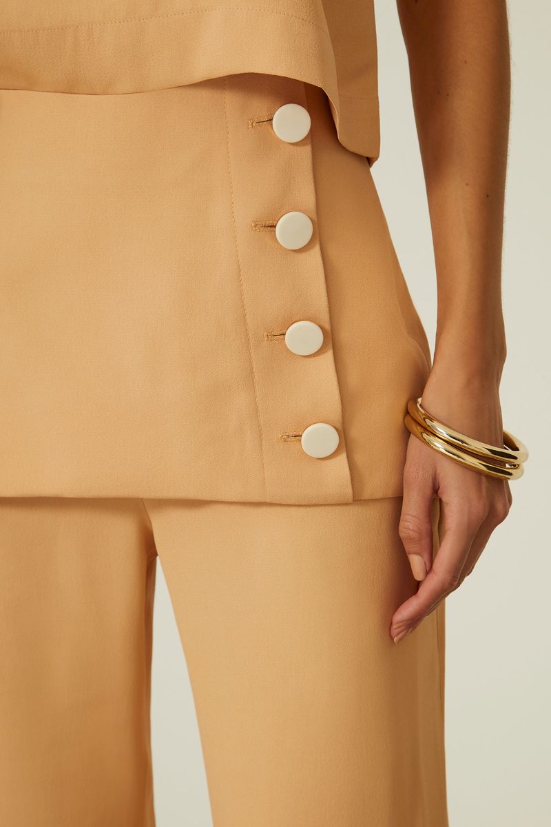 - Abotoamento frontal que adiciona um toque de charme.