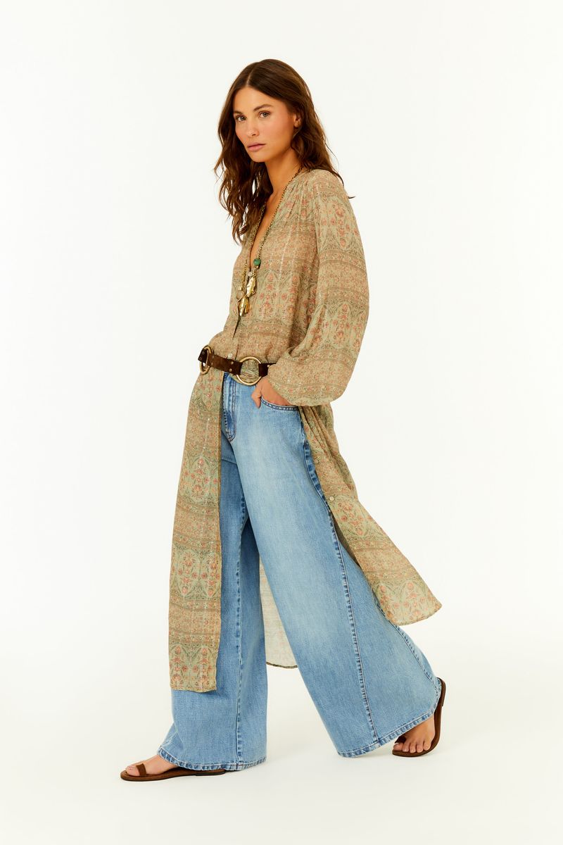 - Modelagem wide leg com efeito alongador.