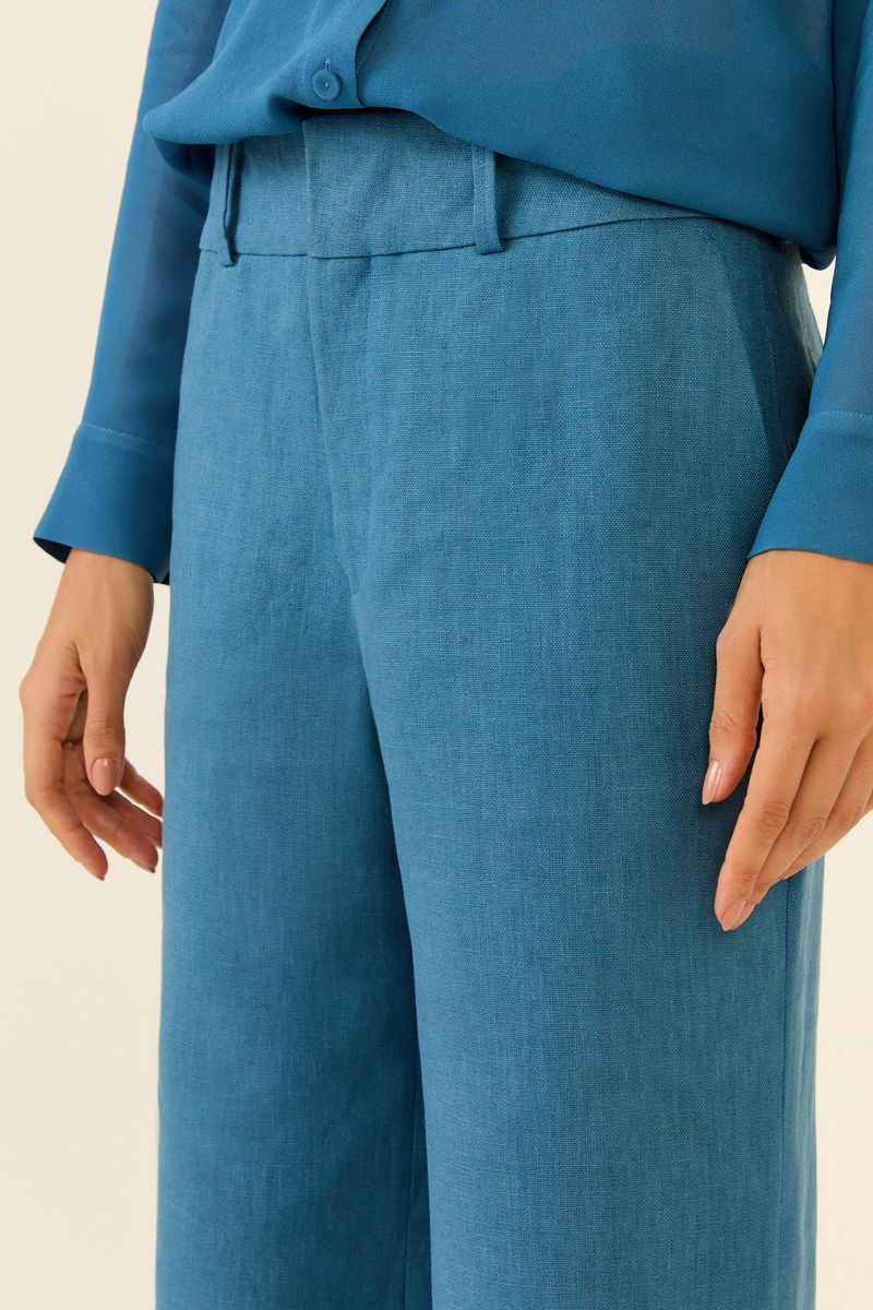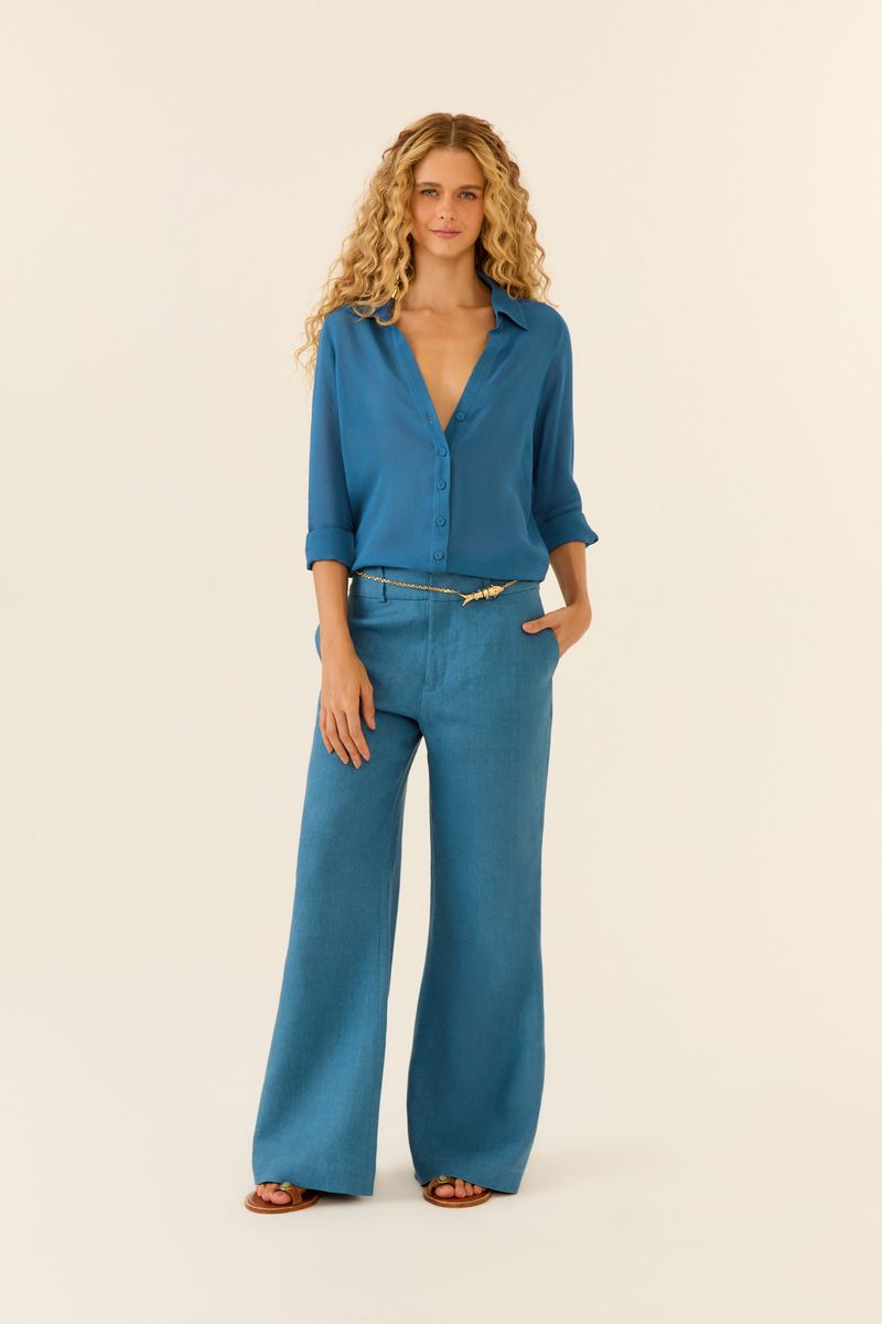 • Tecido de linho puro • Modelagem flare • Bolsos laterais funcionais • Cintura média com zíper e botão frontal • Caimento estruturado com fluidez • Toque natural e respirávelDicas de styling
