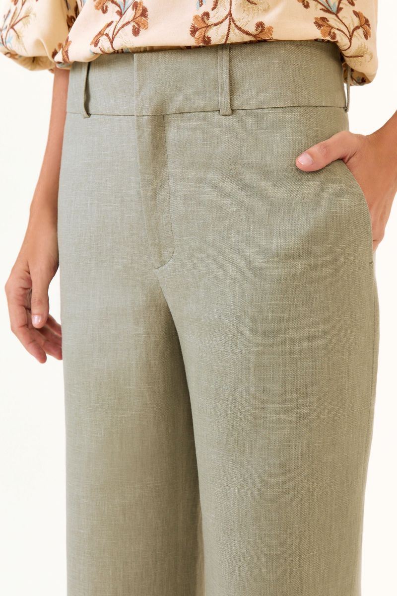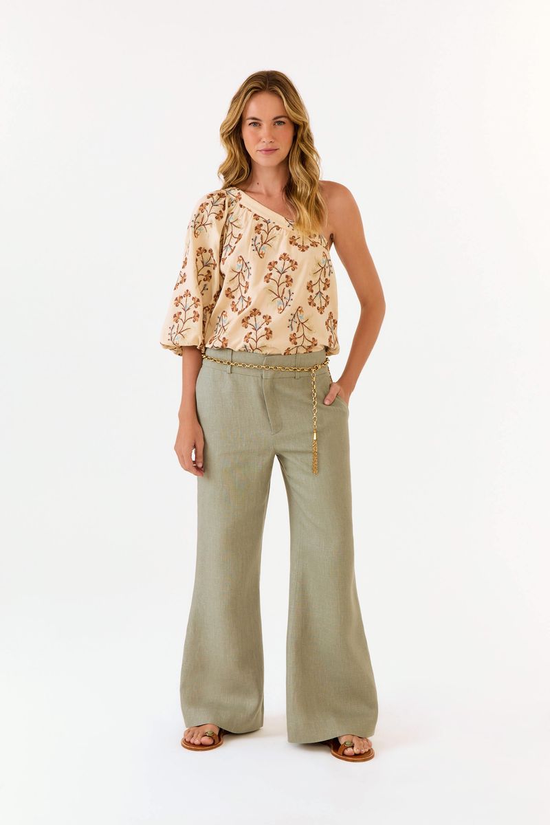• Tecido de linho puro • Modelagem flare • Bolsos laterais funcionais • Cintura média com zíper e botão frontal • Caimento estruturado com fluidez • Toque natural e respirávelDicas de styling