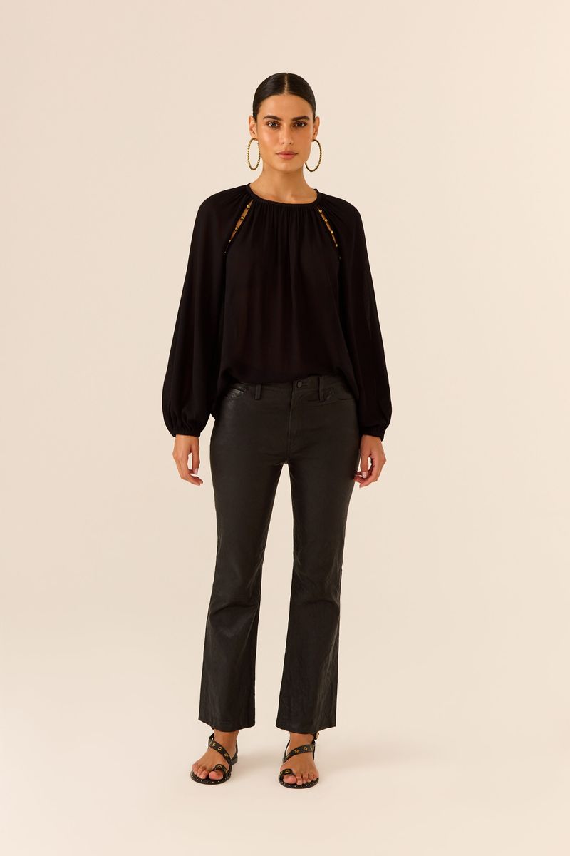 A Calça Mini Flare Couro traz sofisticação em um design atemporal que valoriza a silhueta. Feita 100% em couro, combina estrutura e caimento impecável, proporcionando conforto e elegância. O corte mini flare equilibra modernidade e versatilidade, permitindo composições refinadas com camisas, tricôs ou blusas ajustadas. Uma peça curinga para produções que vão do dia à noite com facilidade.