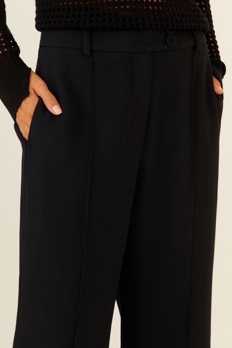 A Calça Reta Crepe Pala V combina elegância e praticidade, oferecendo um caimento impecável e uma estrutura sofisticada. Confeccionada em um mix de acetato e viscose, a peça proporciona conforto e fluidez ao movimento, sendo ideal para compor produções versáteis que transitam entre o casual e o formal. O detalhe da pala em V valoriza a silhueta de forma sutil e harmoniosa, trazendo um toque especial a essa peça atemporal.