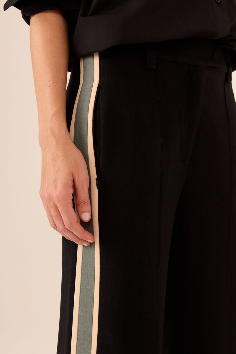 A Calça Reta Crepe Recortes Laterais oferece uma proposta sofisticada, com recortes laterais que adicionam um toque de elegância à sua modelagem reta e confortável. Confeccionada em crepe de alta qualidade, possui ajuste perfeito à silhueta, sem abrir mão do conforto. Ideal para ocasiões que exigem praticidade e sofisticação, ela combina facilmente com diversas produções, sendo uma peça essencial no guarda-roupa.