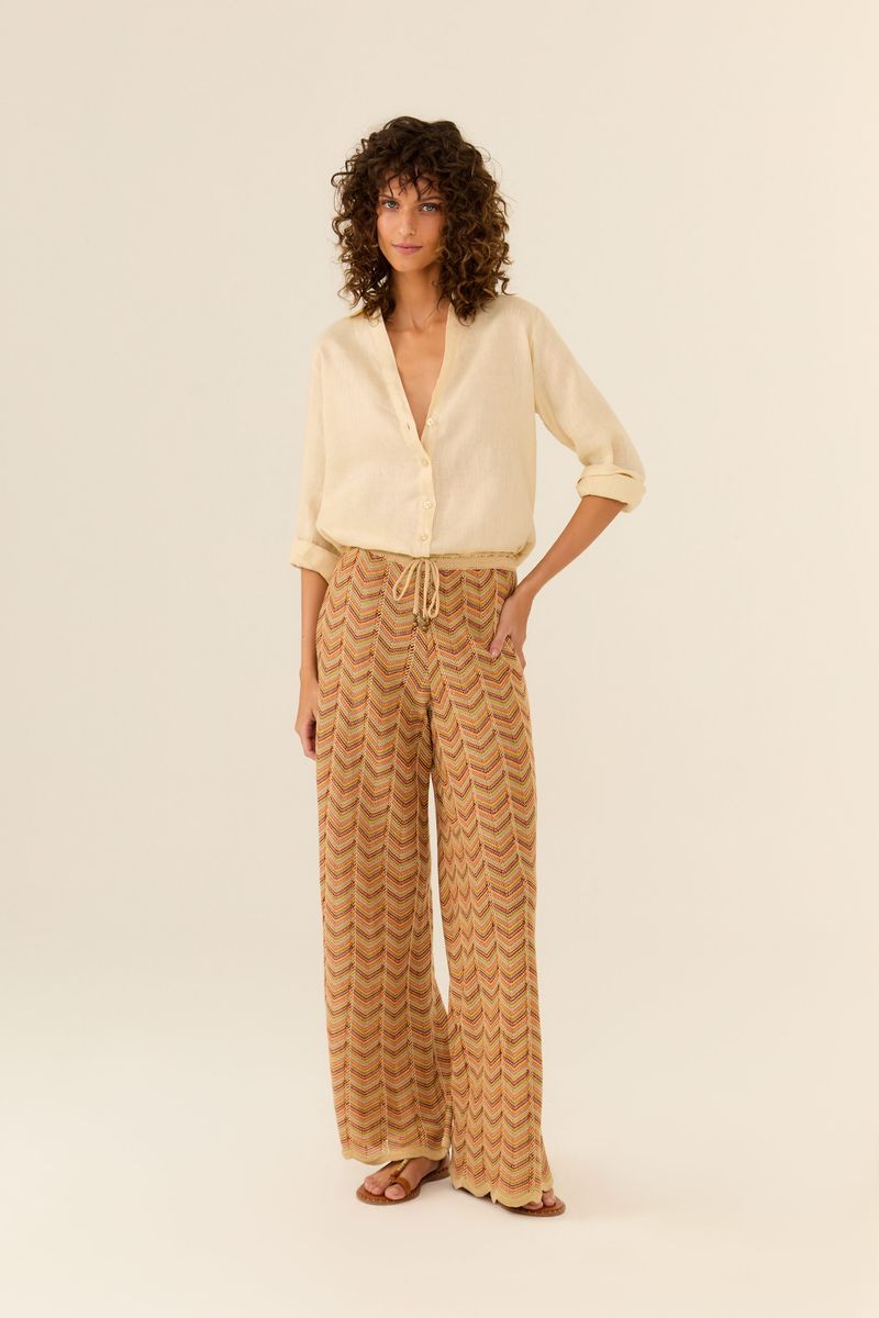 - Calça de tricot com padrão chevron
