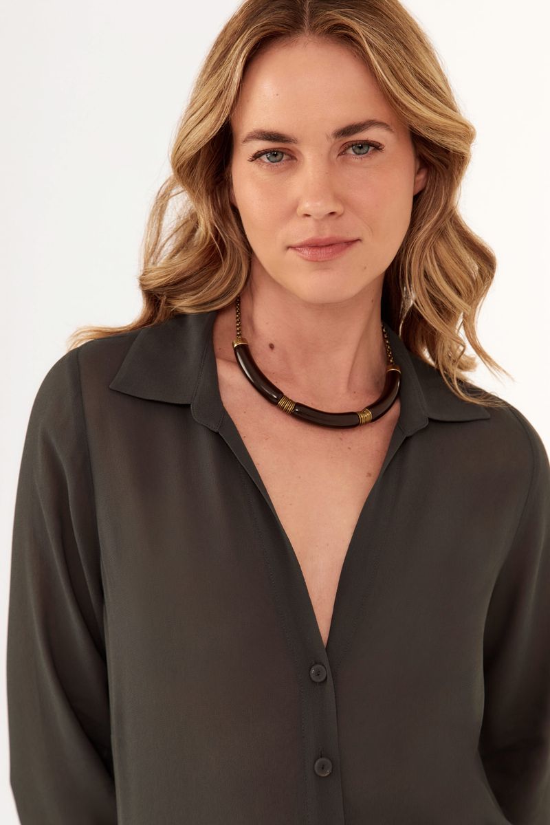 A Camisa GGT é sinônimo de leveza e sofisticação. Com caimento fluido e toque suave, valoriza o movimento com elegância atemporal. Os detalhes nos acabamentos e a modelagem ampla tornam a peça versátil para diferentes propostas, do dia a dia a ocasiões mais especiais.