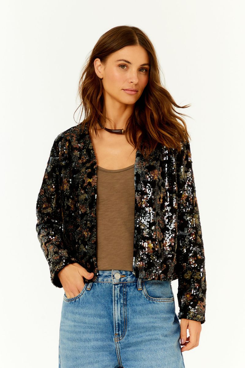 O Casaco Paetê Estampa Blush é a peça que alia brilho sofisticado e design autoral em um só item. Confeccionado em poliéster com forro em poliamida e veludo, apresenta estrutura encorpada e acabamento refinado. Os paetês aplicados sobre fundo estampado criam um efeito metálico singular, que transforma a peça em protagonista de qualquer produção. O fecho em gancho mantém o visual clean, enquanto o forro macio proporciona conforto ao vestir. Atemporal e impactante, é ideal para quem busca protagonismo sem abrir mão da sofisticação.