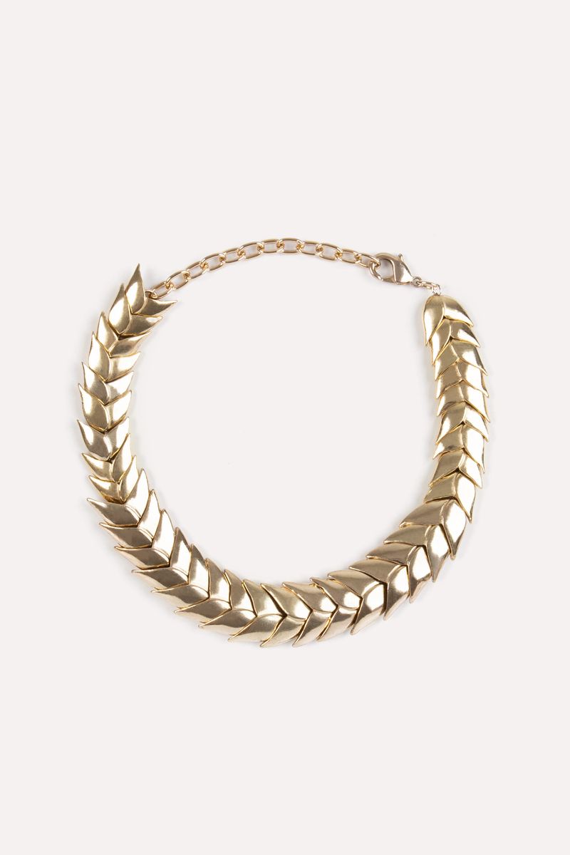 Gargantilha Espinha de Peixe adiciona um ponto de brilho e movimento sutil às produções com seu pingente articulado em metal leve. A corrente com desenho de espinha de peixe realça o colo com naturalidade, combinando com vestidos fluidos ou blusas de linho em composições easy-chic que refletem a essência do Verão 26.
