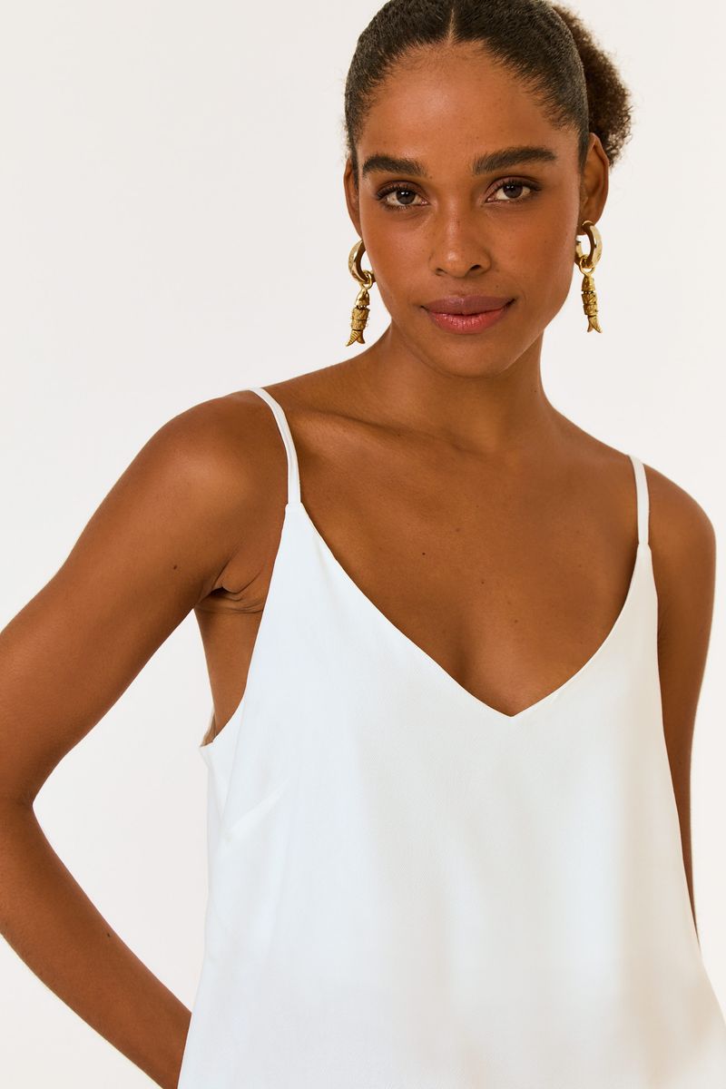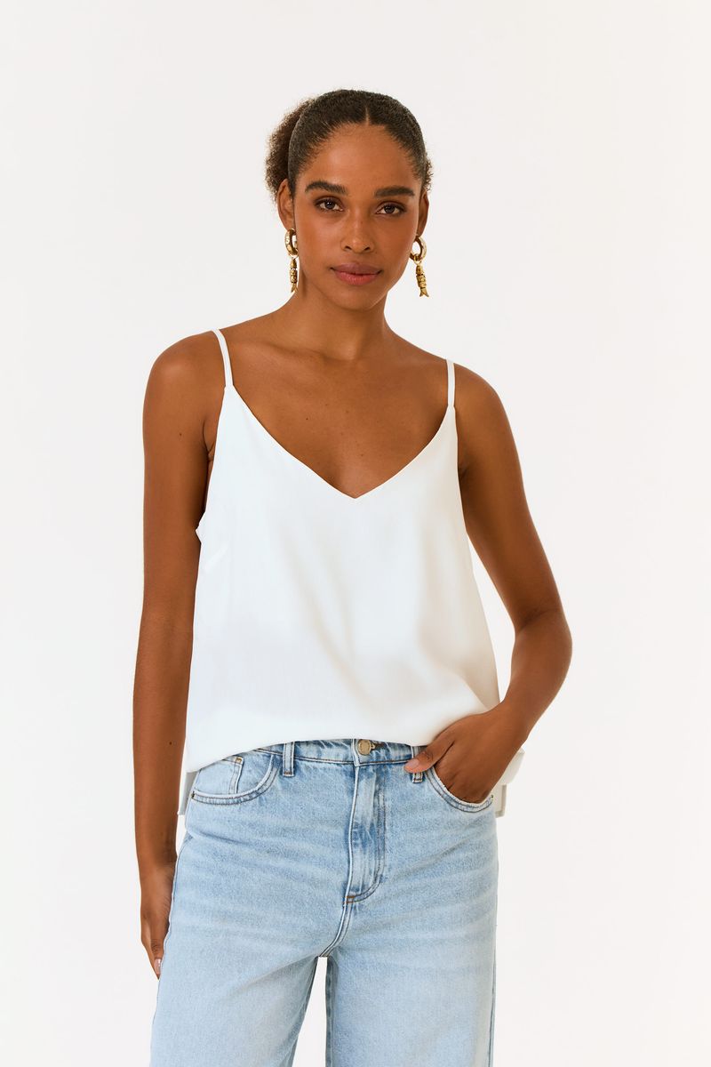 Com caimento leve e toque macio, a regata em tecido liso é uma peça-chave para composições versáteis e elegantes. O decote V valoriza a silhueta com sutileza, enquanto a modelagem oferece liberdade de movimento. Um item atemporal que une frescor, conforto e praticidade para o dia a dia com sofisticação natural.