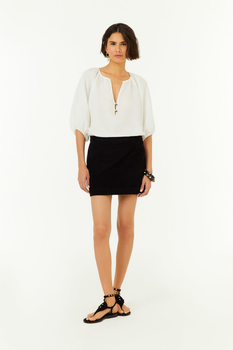 Saia Curta Veludo Cotele Bolso Faca