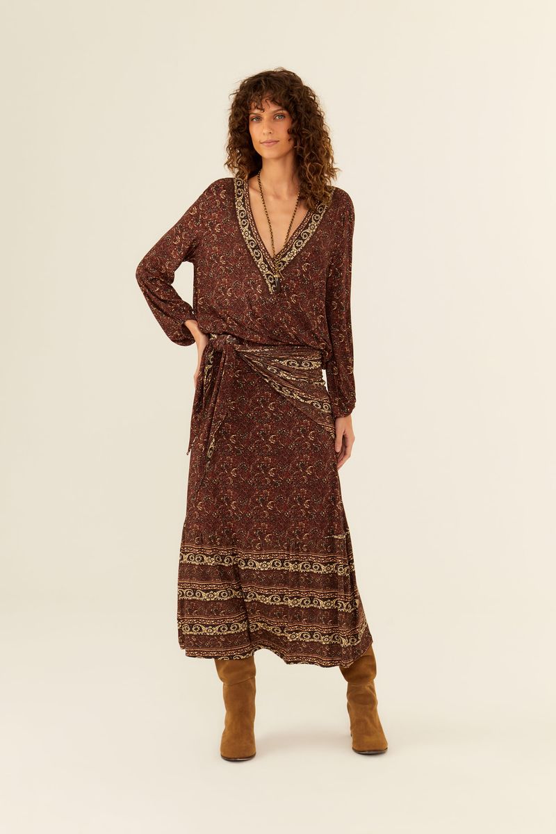 A Saia Midi Estampa Oasis traduz o charme de paisagens tropicais em um design fluido e elegante. Com cintura marcada e movimento leve, é ideal para composições que pedem frescor e sofisticação em qualquer ocasião. A estampa adiciona um toque artístico à peça, tornando-a uma escolha versátil para dias que pedem autenticidade com conforto.