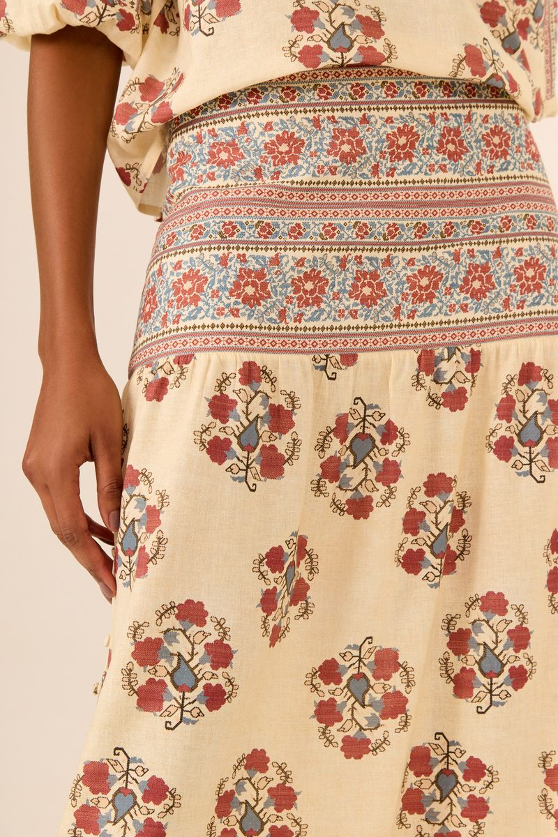 A Saia Midi Estampa Peônia une fluidez e sofisticação em um design que valoriza o movimento. Feita em uma mistura de linho e viscose, tem toque leve e um caimento impecável. A estampa floral traz um charme atemporal, enquanto a modelagem midi proporciona versatilidade para diferentes ocasiões. Combine com blusas leves e sandálias para um visual casual ou aposte em camisas e saltos para um toque mais refinado.