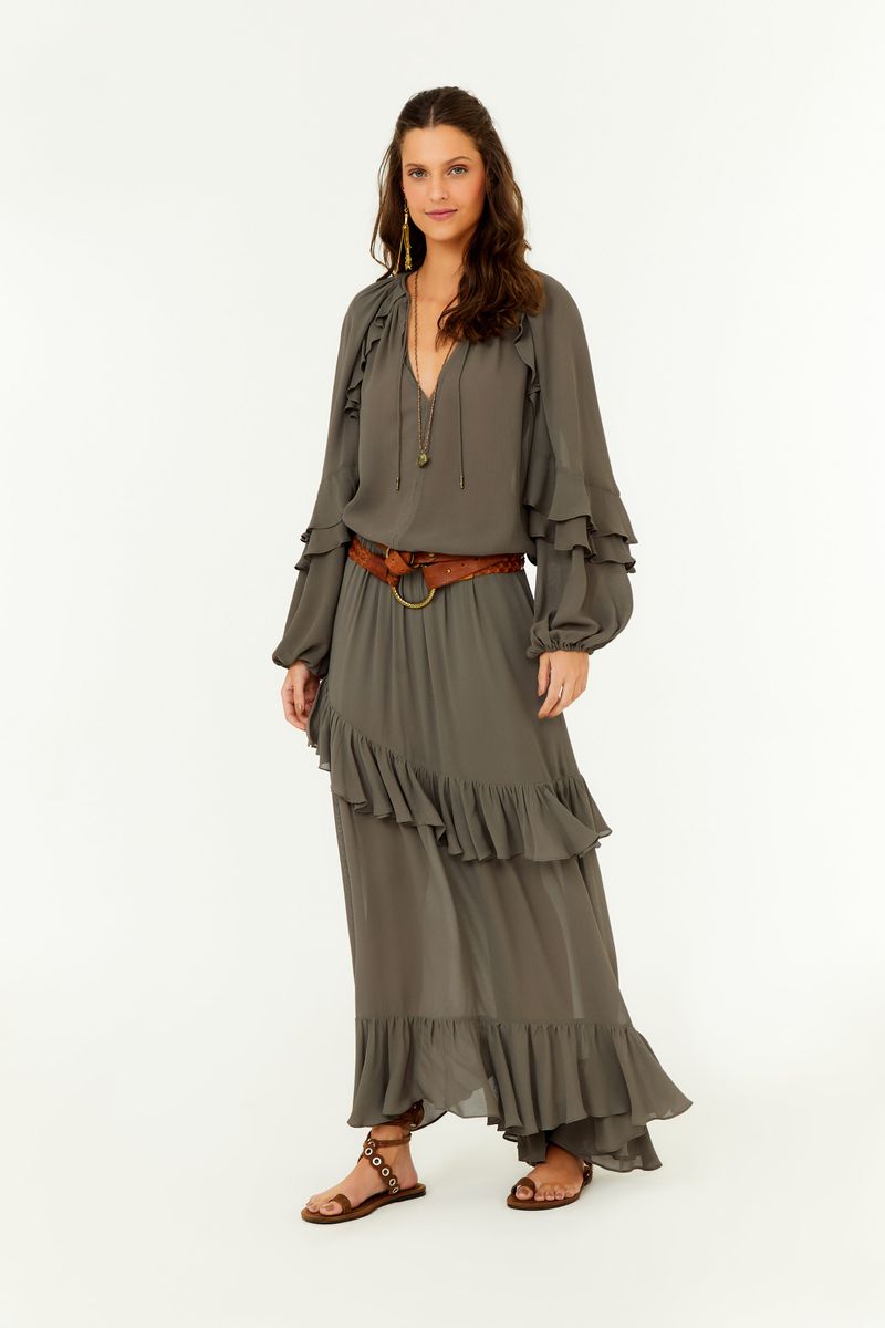 - Combine com blusas lisas de tecidos leves, levemente soltas, para equilibrar o volume dos babados.