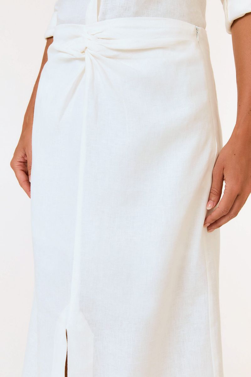 A Saia Midi Torcida Linho traz a leveza natural do linho com um design que valoriza a silhueta em detalhes sutis e sofisticados. Com cintura baixa e modelagem reta, a peça é marcada pela torção frontal que cria um ponto de interesse, somada à fenda discreta que garante movimento e frescor ao visual. O zíper lateral mantém o caimento alinhado ao corpo, enquanto o forro interno proporciona conforto e segurança para o uso em diferentes ocasiões. Atemporal e elegante, é um item essencial para compor produções de verão fáceis e sofisticadas.