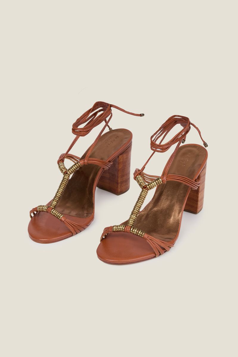 Sandália Salto Couro Argolas