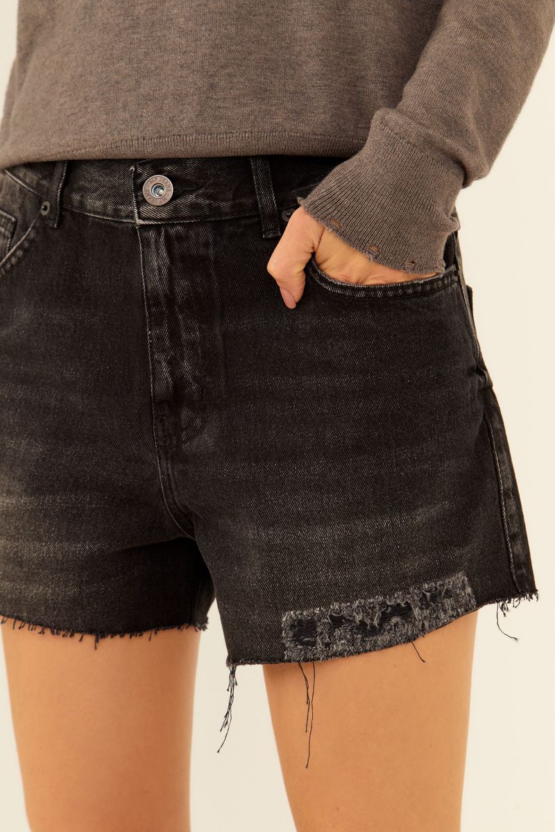 O Short Jeans Black Destroyed combina praticidade e personalidade em uma peça com acabamento marcante. O jeans preto com efeito desgastado traz um toque urbano, enquanto a modelagem reta garante conforto e versatilidade. Ideal para composições casuais com elegância atemporal.