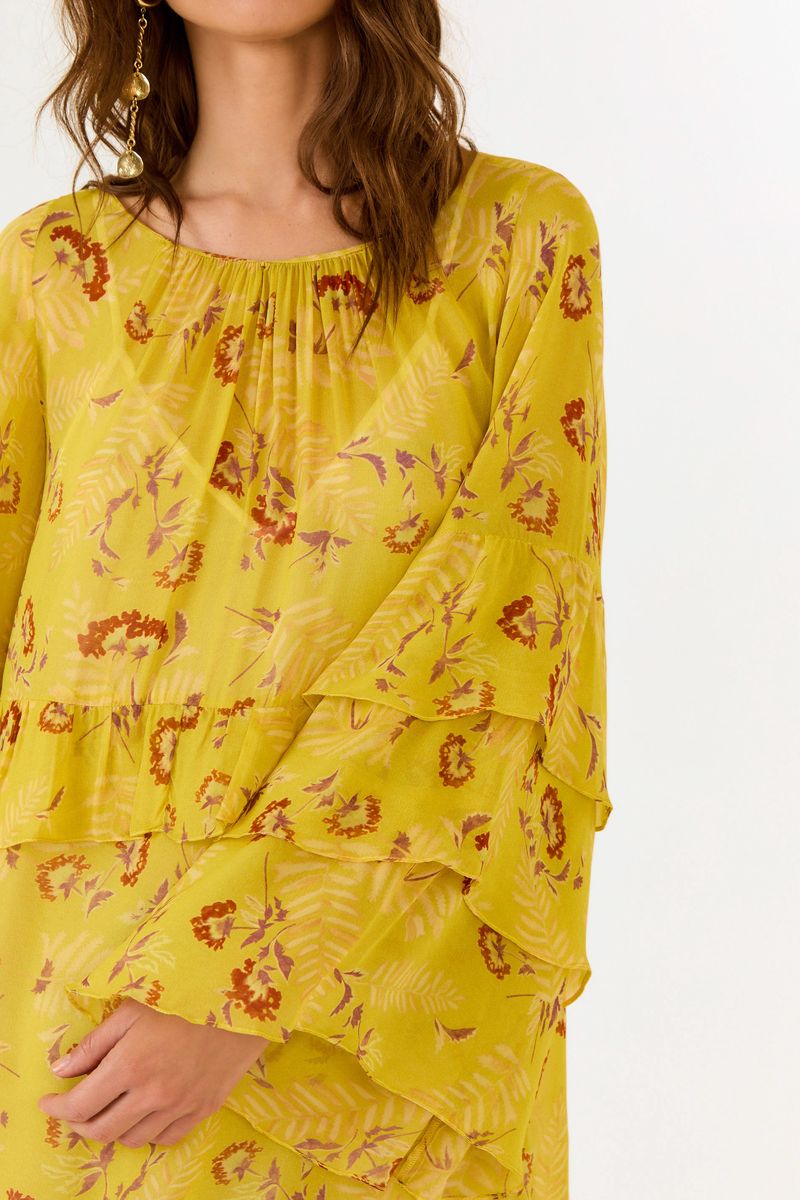 Com leveza no tecido e frescor na estampa, o Vestido Curto Ggt Estampa Daisy traduz a essência do easy-chic em um só look. O caimento fluido realça os movimentos, enquanto o drapeado e os babados imprimem um toque sofisticado sem esforço. O forro interno garante conforto ao vestir, e as cores vibrantes reforçam o ar feminino e atemporal da peça.
