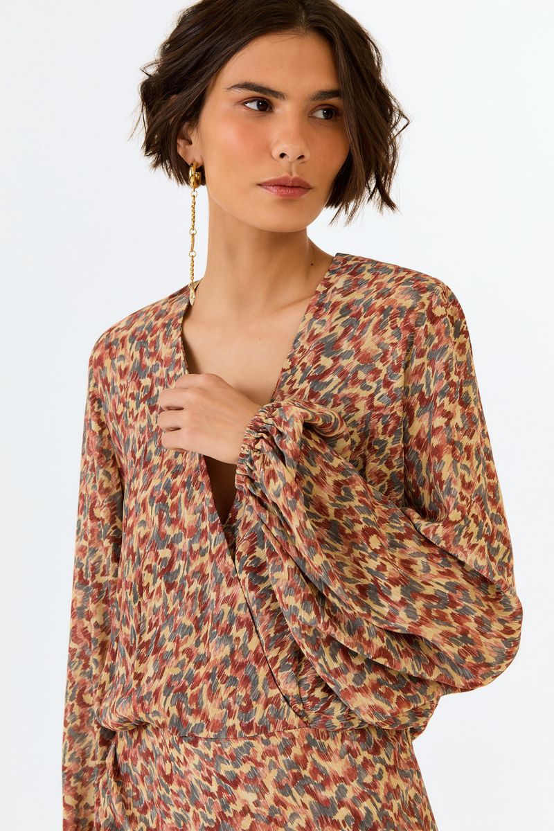 - Decote V transpassado com botão interno