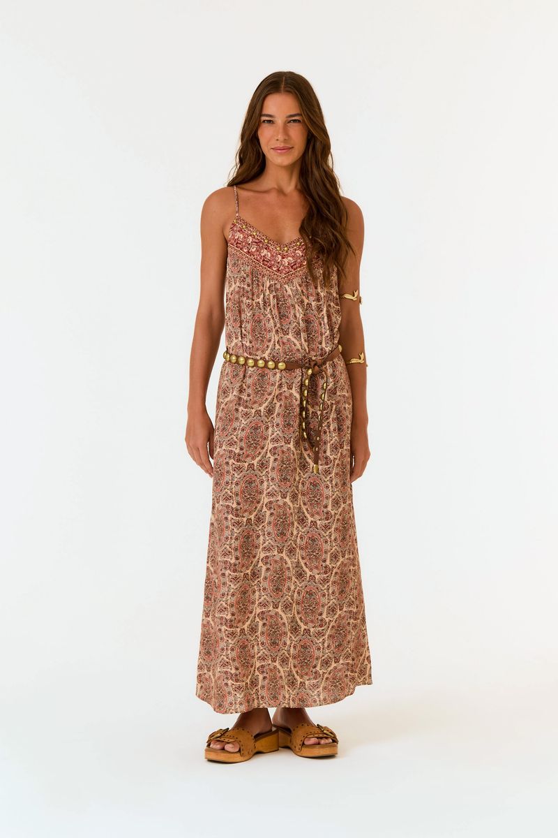 O Vestido Midi Alça Estampa Charm revela o equilíbrio entre leveza e sofisticação. Com caimento fluido e toque agradável, destaca o decote em V adornado por pequenas tachas que iluminam o visual. As alças finas trazem feminilidade, enquanto o comprimento midi garante movimento e frescor. Feito em viscose com linho, é uma peça easy-chic que transita com naturalidade entre o dia e a noite.