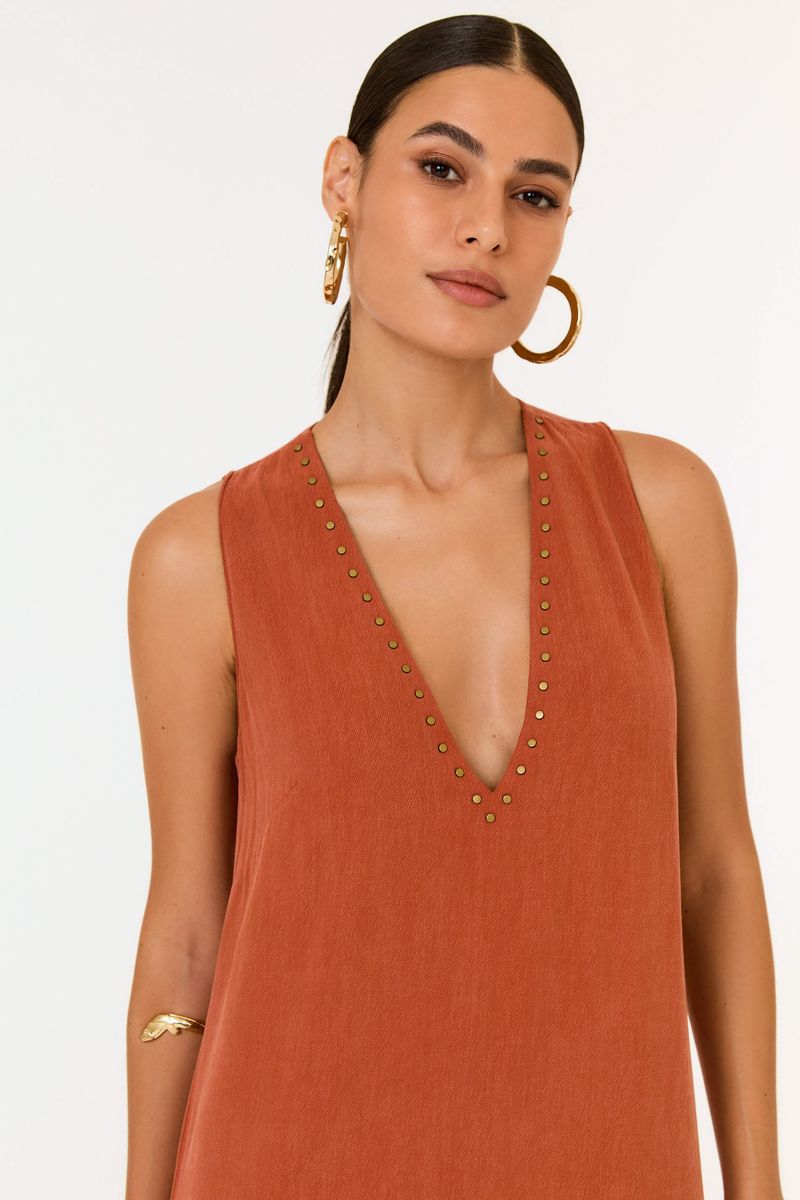 Vestido Midi Fenda Decote Tachas